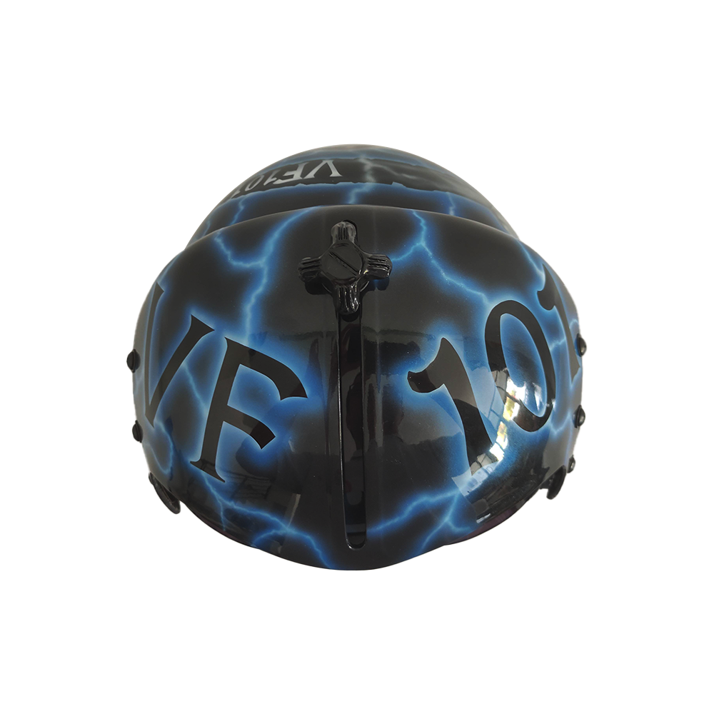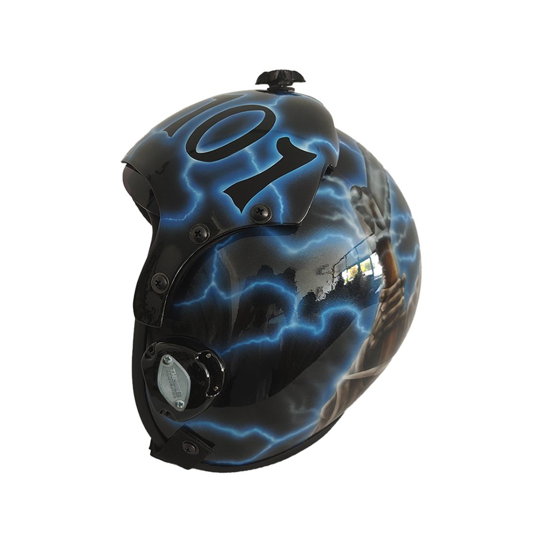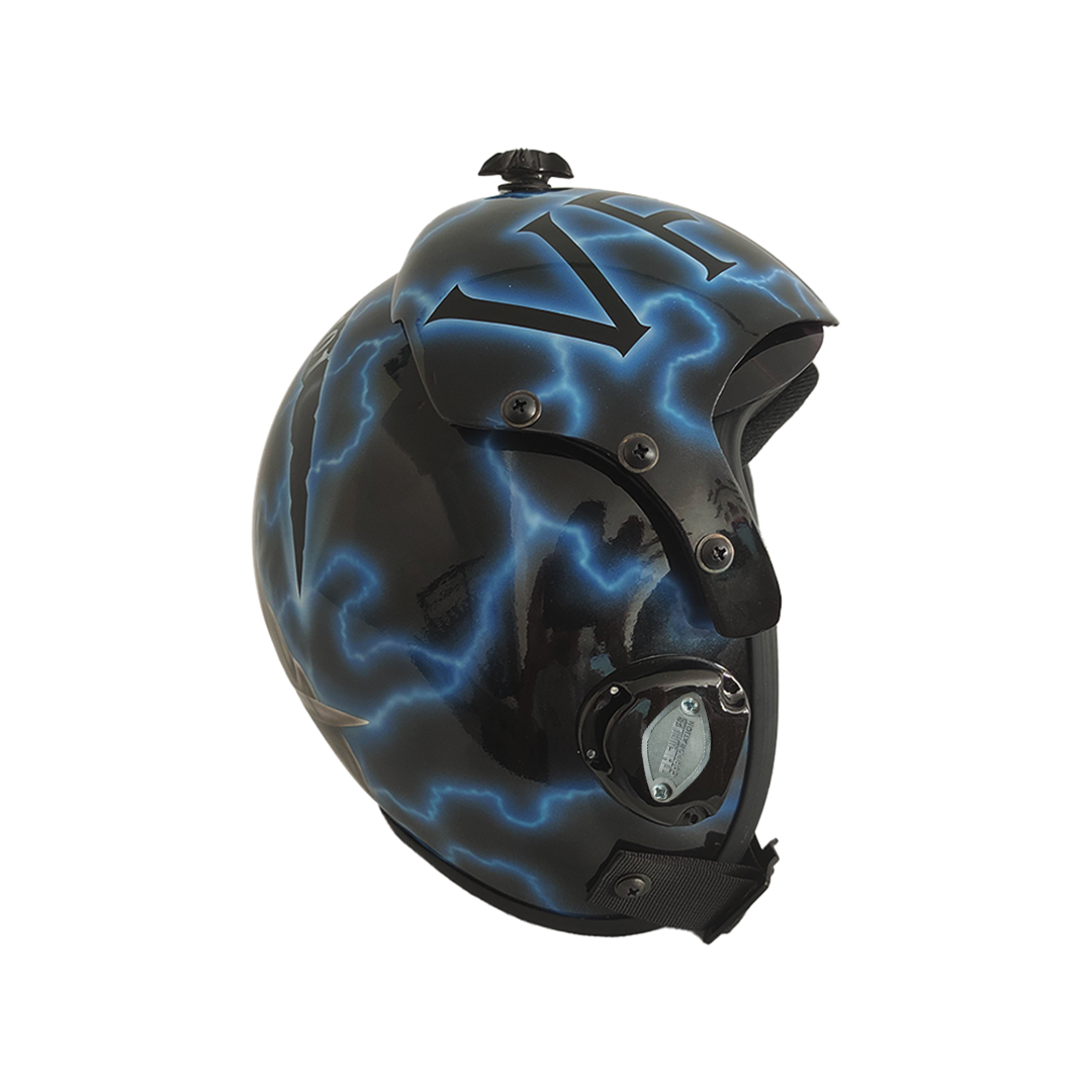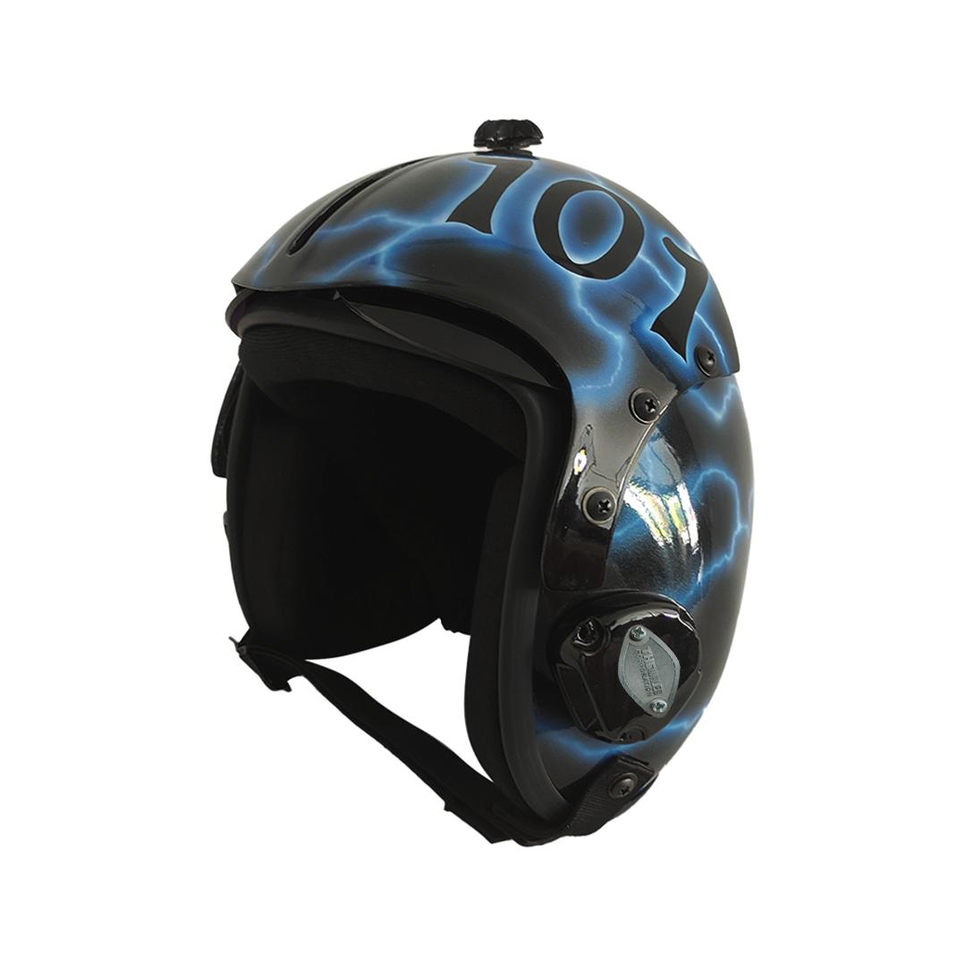 - The helmet has an oxygen mask hook receiver (mechanical) on both insides home receiver.